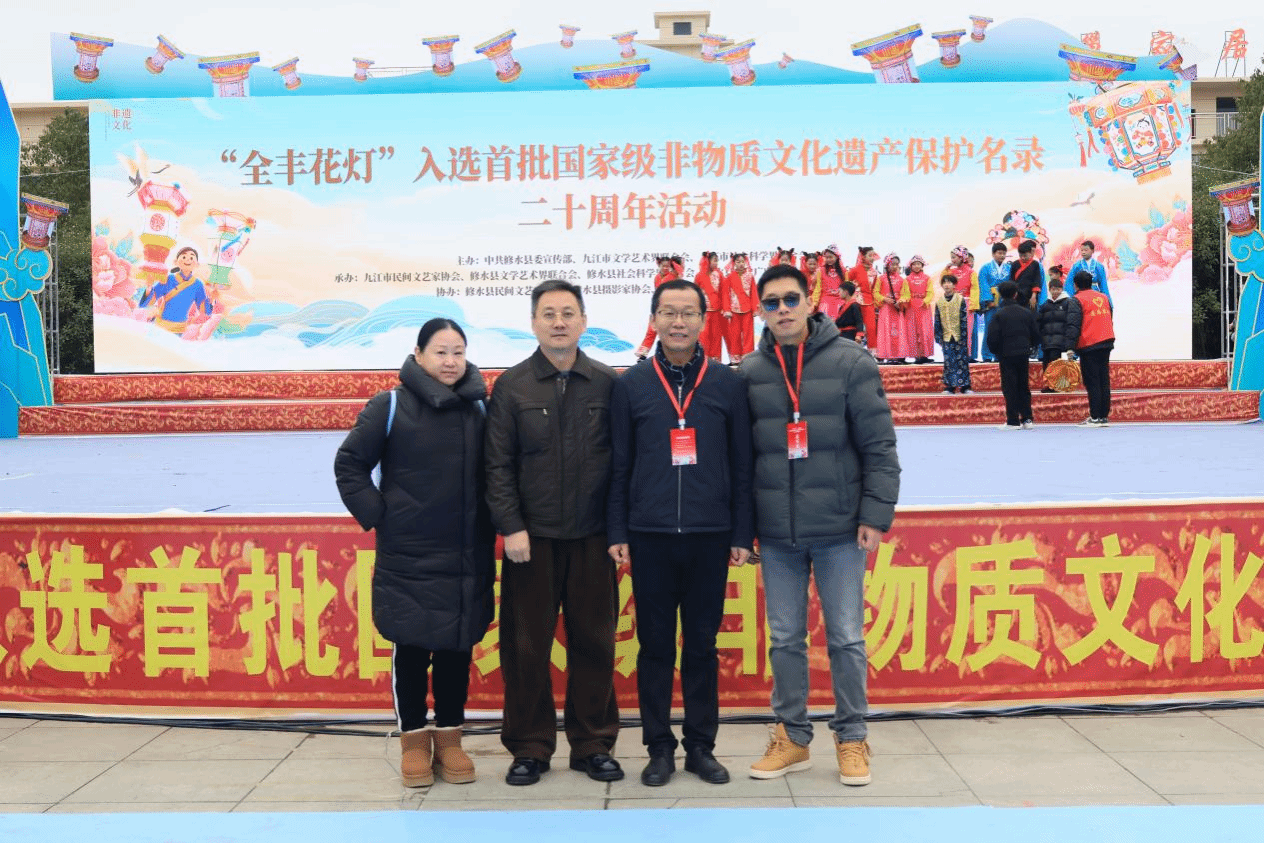 2026年1月1日,我院师生代表前往九江市修水县全丰镇,参加“全丰花灯”入选首批国家非物质文化遗产保护名录二十周年系列活动(展演+学术研讨会)。全丰镇拥有全丰花灯与宁河戏两项国家级非遗项目,其中全丰花灯融合音乐、戏曲与灯彩艺术,是当地珍贵的民俗文化瑰宝。此次走访是我院深化实践教学、推动产教融合的重要举措,旨在通过现场体验与跨文化交流,打造“行走中的课堂”,提升学生专业实践能力与文化使命感。